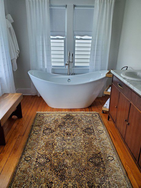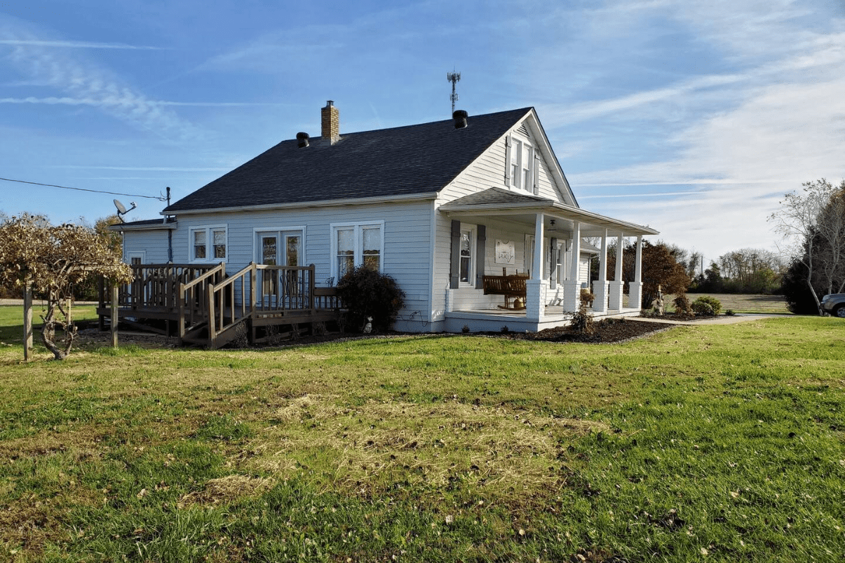 This Farmhouse is 15.8 miles from Safe Harbor-Jamestown Marina & 13 miles from Lake Cumberland Marina, 18 miles from Lake Cumberland State Park and Marina, and 17 miles from Wolf Creek Dam. It is right off of the Cumberland Parkway, and a short distance to both Columbia and Somerset. Enjoy the perfect place to relax with family and friends after a day of boating on the lake or fishing on the river. It is cozy, inviting, clean, and welcoming. The original bathroom boasts a 1950’s tub with newly added showerhead, and the original beadboard ceiling. Our “new” 2nd bathroom has an amazing soaking tub that is always a hit with renters.  Each and every room in the house has a perfect combination of new furniture and antique pieces. To the right of the deck is a large firepit and 6 chairs. We provide wood for our guests to use. There is a large backyard for kids to run around and play. Also, in the summer you will be surrounded by crop (corn or soy), because it still is a working farm.